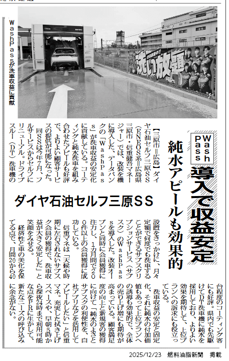 燃料油脂新聞にダイヤ石油 Dr.Drive三原SS様が紹介されました。